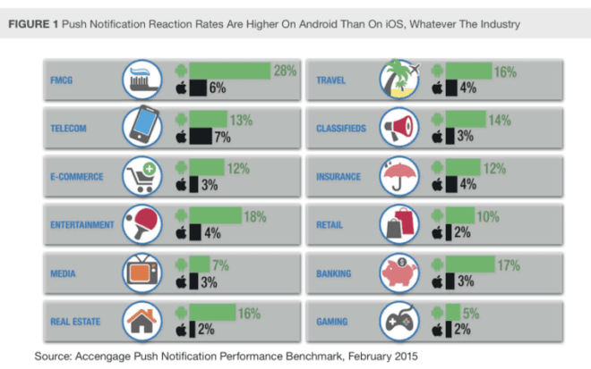 Selon une récente étude de Forrester « Upgrade Your Marketing Plans With Push Notifications And In-App Messagin », 62% des utilisateurs américains acceptent de recevoir des push notifications d’un petit nombre d’applications qu’ils sélectionnent et téléchargent sur leur smartphone. Ils sont en revanche seulement 21% à accepter de recevoir ces notifications de la majorité de leurs applications. Mais pour les marketeurs, elles sont à double tranchant : « si vos messages ne sont pas pertinents, et si vous ne leur donnez pas une valeur visible, vous courrez un risque réel de décevoir le consommateur » explique l’analyste Thomas Husson, auteur de ce rapport.