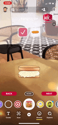 La chaîne de restauration rapide Jack in the Box servira des hamburgers en réalité augmentée jusqu’au 18 août grâce à son partenariat avec Snapchat. Les utilisateurs de Snapchat peuvent déverrouiller un objectif spécial Jack in the Box qui leur permet de personnaliser leurs hamburgers virtuels avec une variété d’options, telles que des garnitures telles que des tacos, des frites frisées et des rondelles d’oignon.