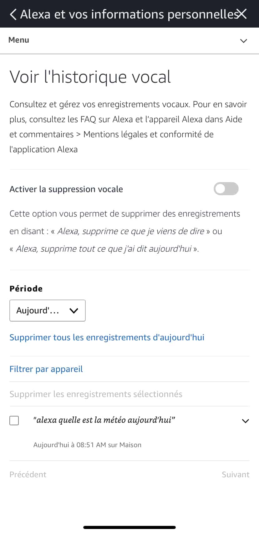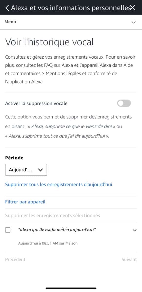 Si vous avez déjà un écho, préparez-vous à un choc, il vous faut absolument connaitre les paramètres de confidentialité pour Alexa. Votre Echo a enregistré beaucoup plus que ce que vous ne pensais être possible. Beaucoup de gens ne réalisent pas que vous pouvez réellement consulter votre journal vocal avec l’application Alexa sur iOS et Android. L’application vous permet de faire défiler votre activité et d’écouter chaque enregistrement. Allez dans l’application Alexa, puis paramètre > Alexa et vos informations personnelles – Vous avez un menu qui vous permettra de voir votre historique vocale – Vous allez pouvoir activer la suppression vocale qui vous permettra par exemple de dire « Alexa, supprime ce que je viens de dire » ou « Alexa supprime tout ce que j’ai dit aujourd’hui »