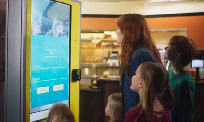 – CaliBurger a installé des kiosques dans ses restaurants pour réduire les délais de commande développés avec NEC, en utilisant son logiciel NEOFace, pour reconnaître les clients lorsqu’ils s’approchent du kiosque. Il s’active automatiquement via leur programme de fidélité et leurs préférences avant de passer commande à partir de l’écran interactif. L’acquisition de données permet également d’obtenir des informations démographiques de base à partir des données visuelles, pour l’instant il s’agit du sexe et de l’estimation de l’âge des clients, mais avec le temps, l’IA pourra travailler sur des points de données plus avancés tels que les expressions. Détecter un client qui est heureux ou triste va déterminer le contenu qui est affiché sur le kiosque !!