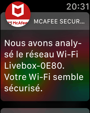 Si vous avez un iPhone l’app McAfee Mobile security vous offre plusieurs outils qui peuvent être redondants avec Apple ! Mais le scan du réseau WiFi automatique est un atout, tous les appareils qui utilisent le wifi sont vulnérables. Si vous avez une apple Watch, vous avez la notification du scan pour le WiFi, la durée de votre batterie d’iPhone et la possibilité de faire sonner pendant 1 minute une alarme stridente pour savoir où il se trouve ! La version Android est plus poussée sur les Apps, pour l’instant !