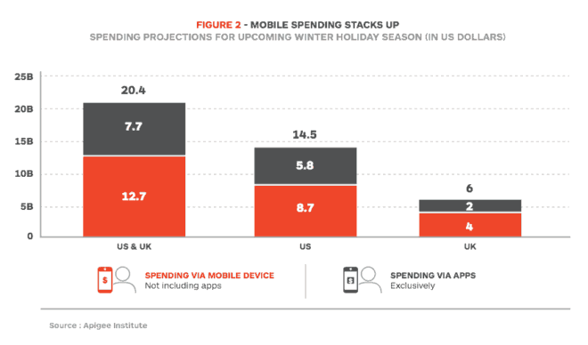 [Les propriétaires de smartphones aux États-Unis et au Royaume-Uni sont convaincus qu’ils vont dépenser environ $ 20,4 milliards par le biais de leurs téléphones cette fin d’années et 7,7 milliards de dollars grâce à des applications. ]