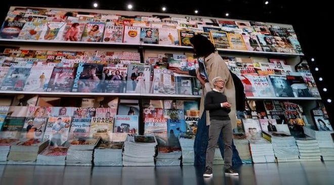 La keynote 100% services, Gaming, TV, Card et Apple News+, permettant aux utilisateurs d'accéder à des centaines de magazines et à certains des principaux journaux du monde.