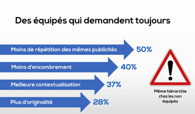 – 50 % des utilisateurs d’adblockers demandent moins de répétition des mêmes publicités