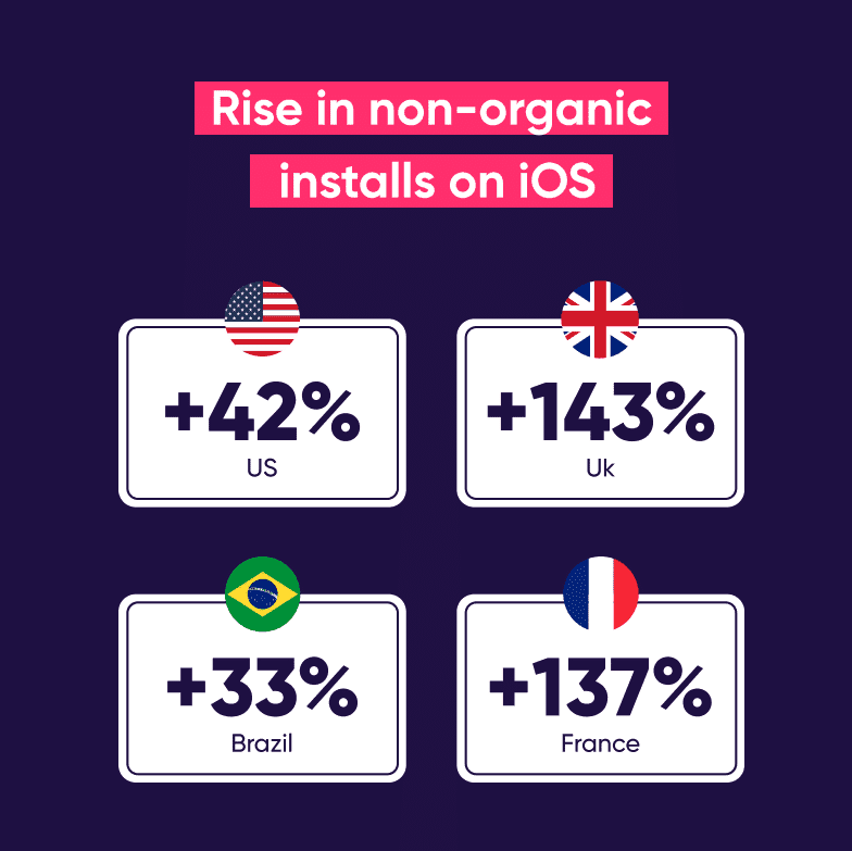 - Investissement stratégique dans iOS : Reconnaissant l’importance d’iOS dans le paysage numérique actuel, les spécialistes du marketing ont alloué stratégiquement des ressources pour tirer parti de cette plateforme, entraînant un retour sur investissement significatif. Cette décision a été largement récompensée lors du Black Friday 2023 avec une hausse de +137 % des installations sur iOS.