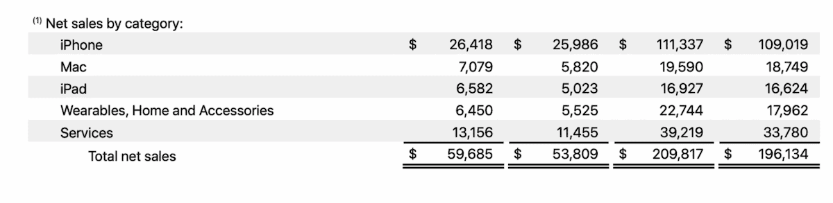 Le géant de la technologie a enregistré un chiffre d’affaires de 59,69 milliards de dollars au cours de son troisième trimestre fiscal, alors même qu’une nouvelle vague d’épidémies de coronavirus à travers les États-Unis a conduit la société à fermer à nouveau des magasins. Les bénéfices ont augmenté d’environ 12% pour atteindre 11,25 milliards de dollars, soit 2,58 dollars par action.