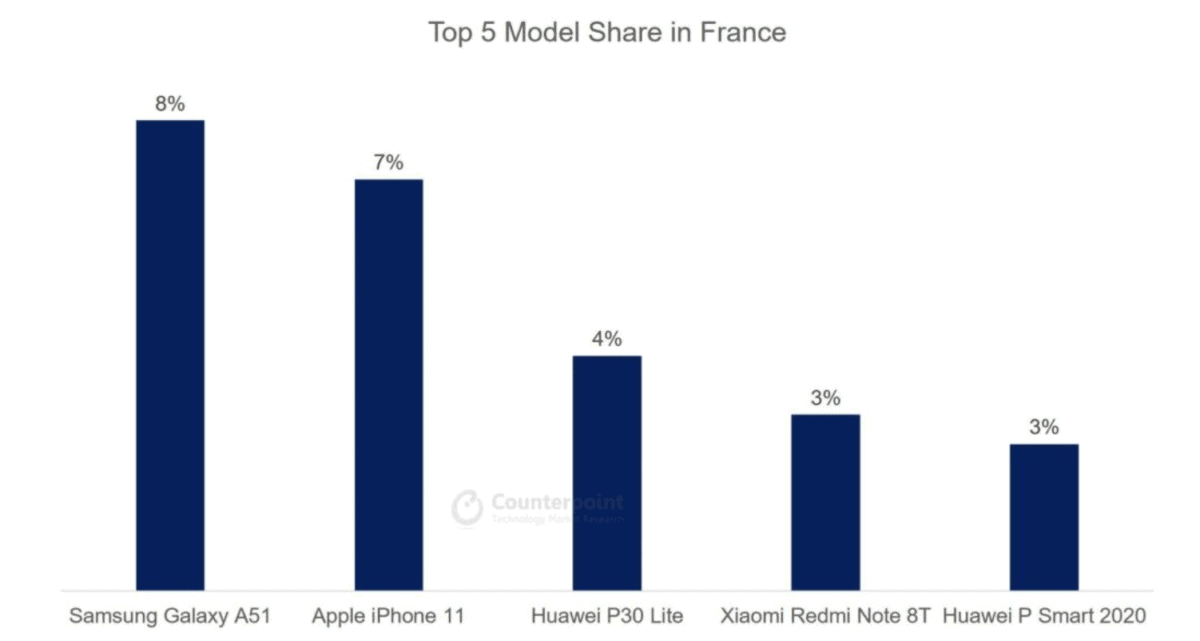Les ventes de smartphones au Canada ont diminué de 36% en glissement annuel au deuxième trimestre 2020. Apple et Samsung continuent de dominer ensemble le marché canadien des téléphones intelligents. Au deuxième trimestre 2020, les deux marques représentaient ensemble 86% des ventes totales de smartphones contre 81% au deuxième trimestre 2019. En termes de volumes, Apple a reculé de 24% en glissement annuel par rapport à la baisse de 41% de Samsung. Apple a capturé sept places dans le top 10 des appareils les plus vendus au cours du trimestre. L’Apple iPhone 11 reste le smartphone le plus vendu au deuxième trimestre 2020.