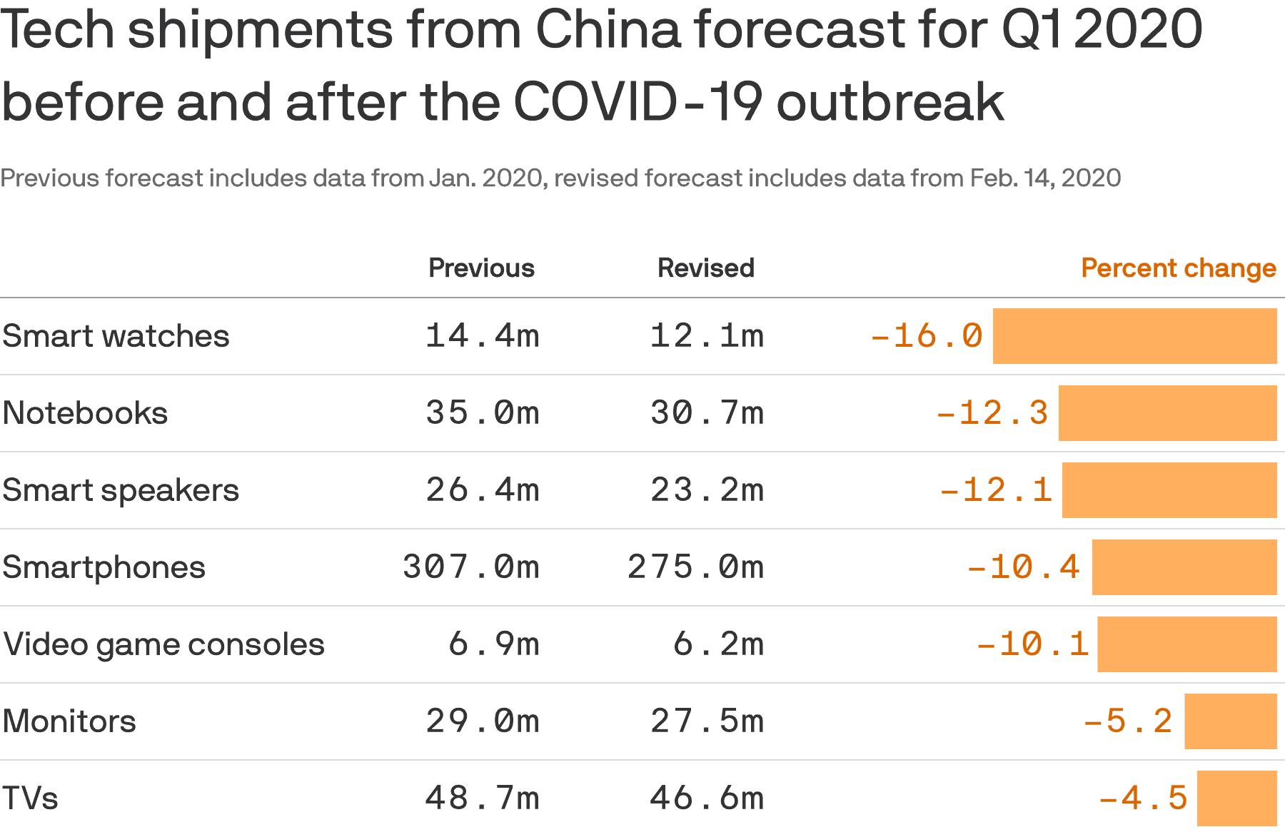 La reprise du marché mondial des smartphones sera affectée en 2020, car les incertitudes autour de COVID-19 ont augmenté au cours du dernier mois. Selon les dernières prévisions de l’International Data Corporation (IDC) Worldwide Quarterly Mobile Phone Tracker, le marché mondial des smartphones devrait reculer de 2,3% en 2020 avec un volume d’expédition d’un peu plus de 1,3 milliard. L’épidémie de COVID-19 devrait accentuer le scénario à court terme avec des livraisons en baisse de 10,6% d’une année sur l’autre au premier semestre de 2020. Les livraisons mondiales de smartphones devraient renouer avec la croissance en 2021 grâce à l’accélération des efforts 5G. Source