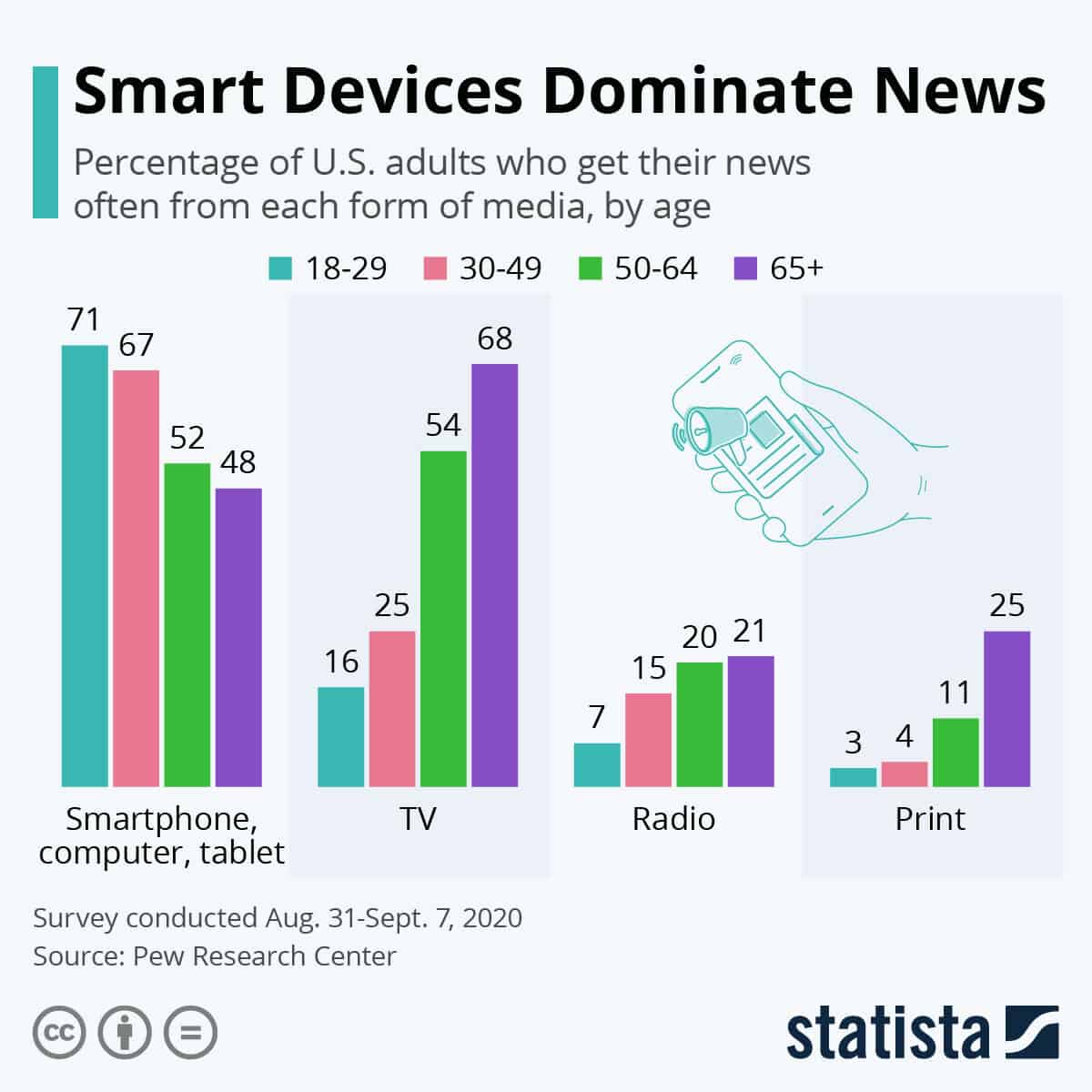 De nouvelles données d’enquête montrent qu’une grande majorité des nouvelles générations aux États-Unis obtiennent une grande partie de leurs informations uniquement à partir d’appareils intelligents tels que les téléphones, les ordinateurs et les tablettes, tandis que les générations plus âgées continuent de recevoir des informations de médias plus traditionnels tels que la télévision, la radio et la presse écrite
