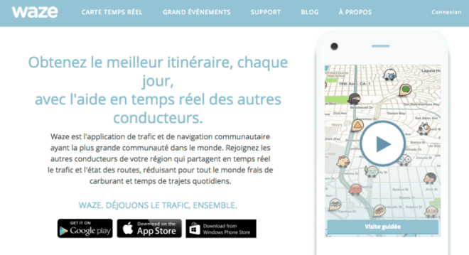Waze, qui est un must, qui à révolutionné la navigation & Trafic communautaire en temps réel permet à ses 50 millions d’utilisateurs de simplifier leurs déplacements à travers le monde. Elle est disponible gratuitement sur iOS et Android dans plus de 200 pays, et traduite en 45 langues. Les utilisateurs fournissent en temps réel des informations liées à leurs trajets (ralentissements, accidents, conditions météorologiques, etc) dans le but d’améliorer le parcours des autres automobilistes.