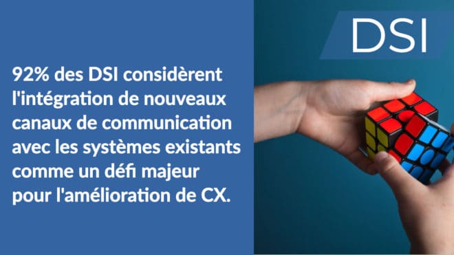 – 92% des DSI considèrent l’intégration de nouveaux canaux de communication avec les systèmes existants comme un défi majeur pour l’amélioration de CX.