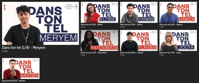 Dans ton tel est une série écrite et réalisée par Sheerazad Chekaik-Chaila et Antoine Schirer et produite par Upian et diffusée dans le cadre du projet de L’Atelier de l’Audiovisuel Public qui réunit ARTE France, RFI, France 24, FTV, Radio France, TV5 Monde. A travers huit portraits, elle explore les téléphones portables de huit adolescents. La web-série nous plonge dans les usages propres à chacun avec cet objet de l’intime.