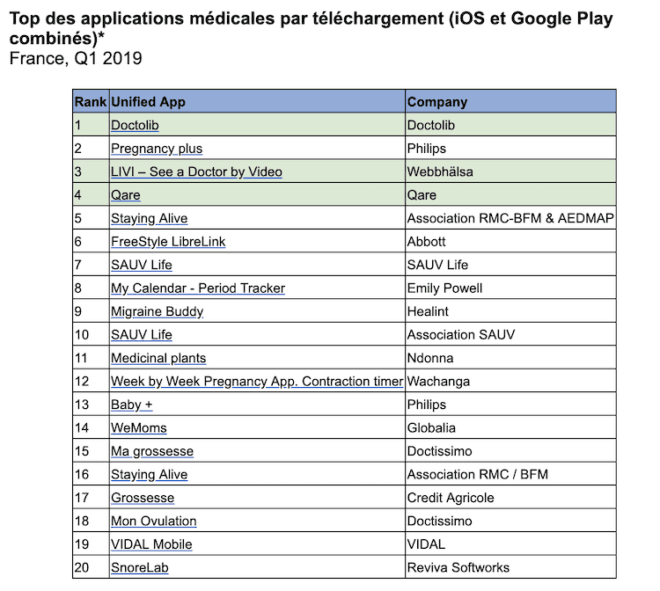 En France, Doctolib a maintenu sa position de leader en termes de Top Applications Médicales par téléchargements tout au long de l’année 2018 et du 1er trimestre 2019. Lancé à Paris il y a cinq ans, elle emploie actuellement 750 personnes réparties dans 40 bureaux en France et en Allemagne. elle reçoit 30 millions de visites en ligne de patients chaque mois. Elle a levé 150 millions € ce qui la valorise à plus de 1 milliard €. Sa communauté de 75 000 médecins et 1 400 établissements de santé en France et en Allemagne.