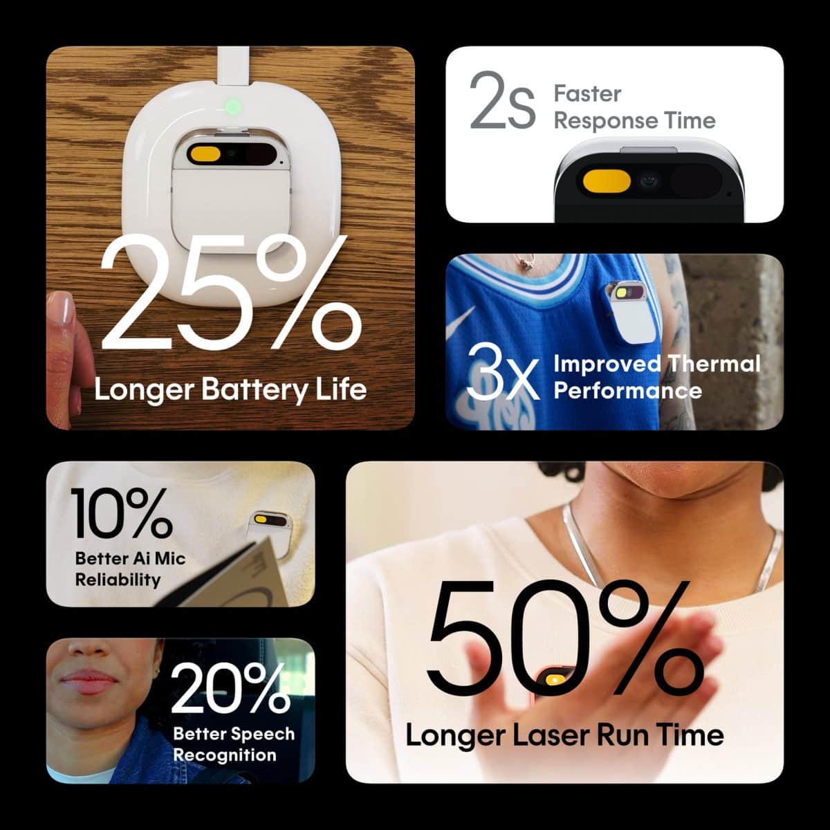 Le Humane AI Pin s’intègre de manière transparente avec d’autres appareils et services alimentés par l’IA, créant un écosystème cohérent et efficace. Qu’il s’agisse de contrôler votre maison intelligente, de gérer votre calendrier ou d’assister à des tâches professionnelles, le pin agit comme un centre de commande central. L’IA est la plus grande innovation de notre temps, mais il représente la deuxième innovation la plus importante. Il incarne le potentiel de l’IA dans une forme simple et utilisable au quotidien, améliorant nos vies de multiples façons.