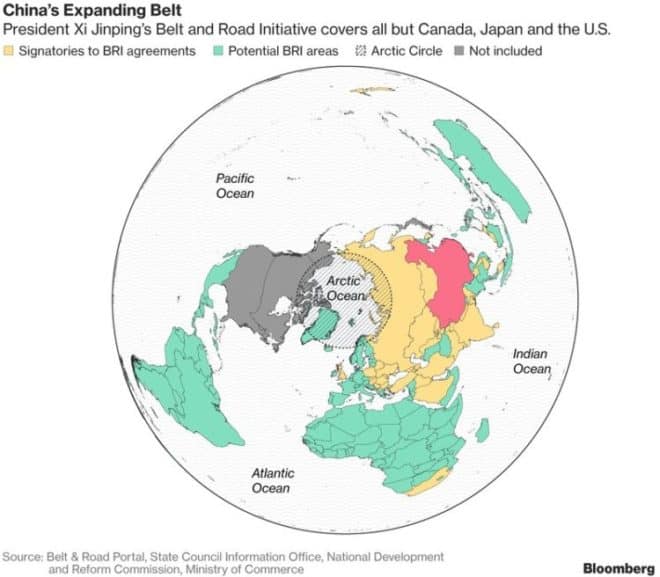 Regardez comment fonctionne la BRI – leur initiative Belt and Road, qui implique 60 pays – il est tout à fait possible que ces pays commencent à s’investir dans l’infrastructure que construit la Chine avec une perte de liberté.  The Belt and Road est une initiative massive de Pékin visant à accroître l’influence politique et économique de la Chine en connectant et en facilitant tous les types de commerce, y compris le commerce numérique, entre la Chine et des pays d’Europe, d’Afrique, du Moyen-Orient et d’Asie.