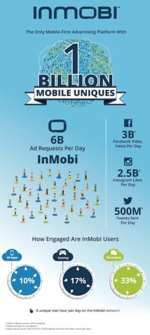 InMobi, est surement l’une des plateformes de publicité au monde les plus puissante, ils ont annoncé avoir dépassé le milliard d’appareils mobiles connectés à son réseau au quatrième trimestre 2014, en faisant la première et seule plateforme mobile de publicité à avoir atteint cette étape emblématique.