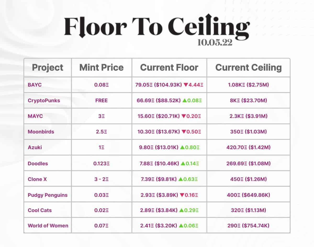 - Évolution des prix des principaux projets NFT