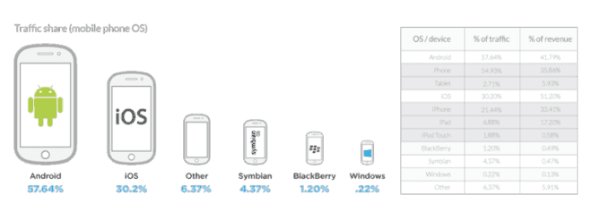 [Au court du 4ème trimestre Android conforte son avance dans la publicité ce qui représente aujourd’hui plus de 50% de toutes les impressions servi sur 800 M user du réseau Opera -Au 1er trimestre de cette année, nous avons signalé que 11% de nos impressions publicitaires mondiaux étaient rich media – avec 2,5% étant de la vidéo. À la fin de ce trimestre, plus de 15% de notre trafic global total etait rich media, avec 8,7%, venant de formats vidéo.]