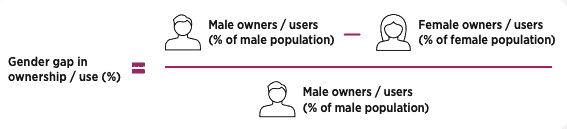 L’écart entre les sexes dans la possession d’un téléphone mobile et l’utilisation de l’Internet mobile est calculé à l’aide de la formule suivante :
