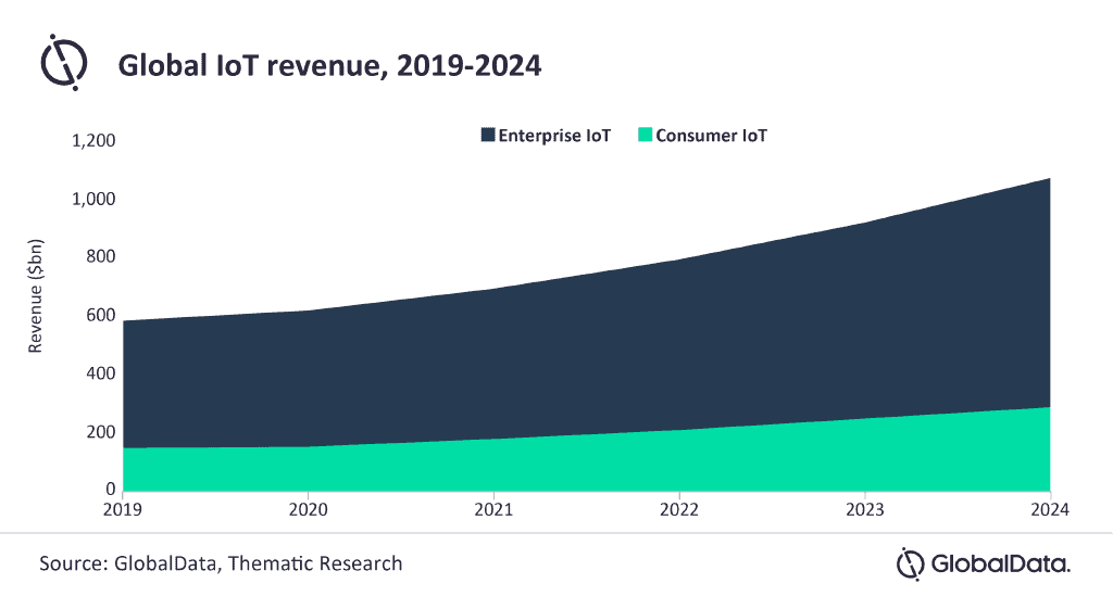 L’IoT d’entreprise domine le marché global de l’IoT, générant 76 % du chiffre d’affaires total en 2020. Cette domination de l’IoT d’entreprise se poursuivra dans un avenir prévisible. GlobalData s’attend à ce que ce segment occupe toujours 73 % du marché global de l’IoT en 2024.