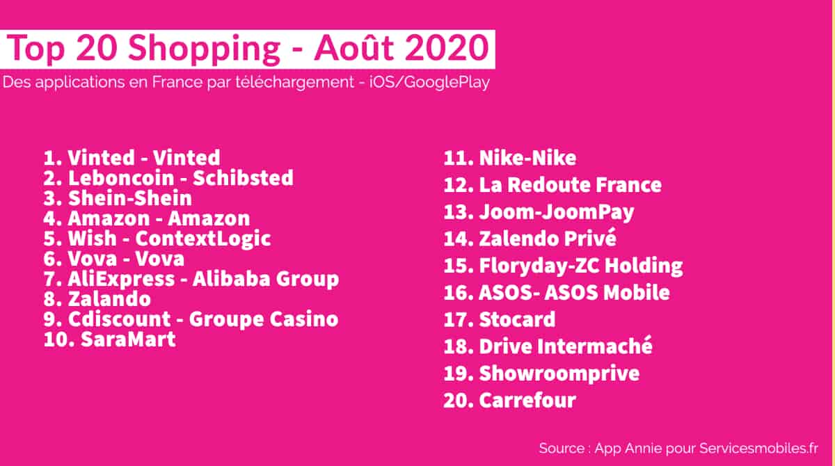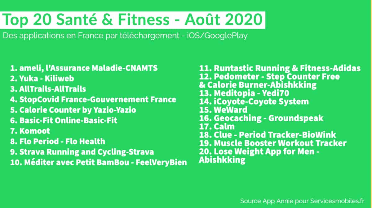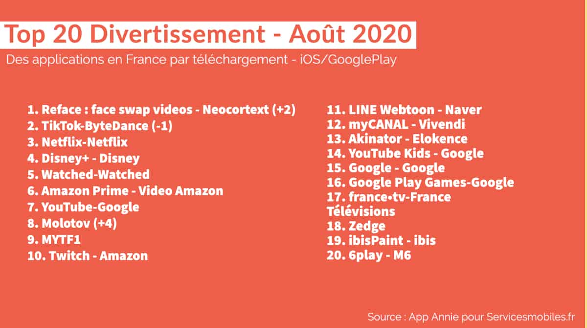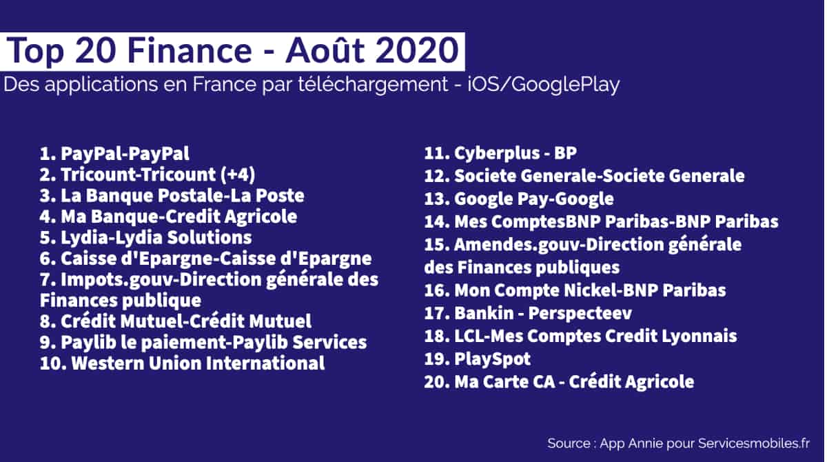 Le Top 20 des Apps en France (Août 2020) : Finance, Divertissement, Shopping, Santé