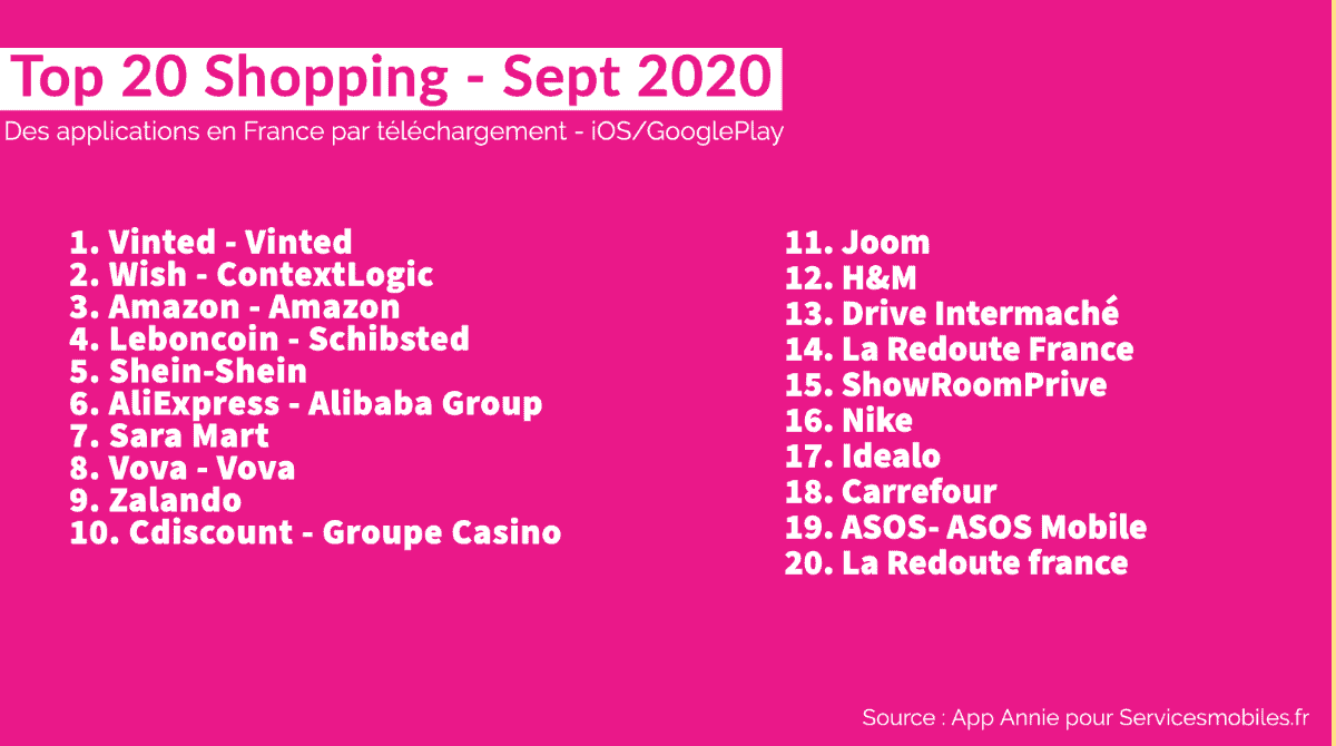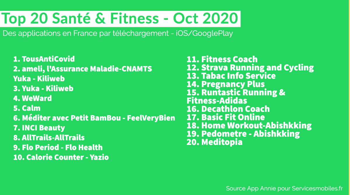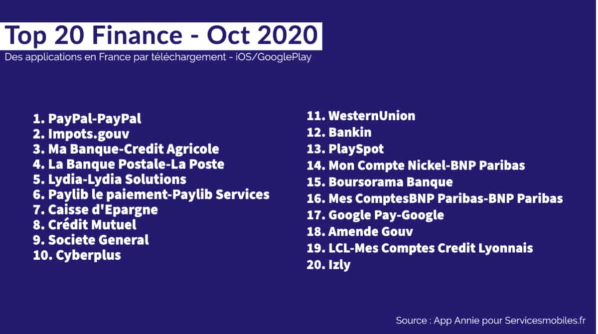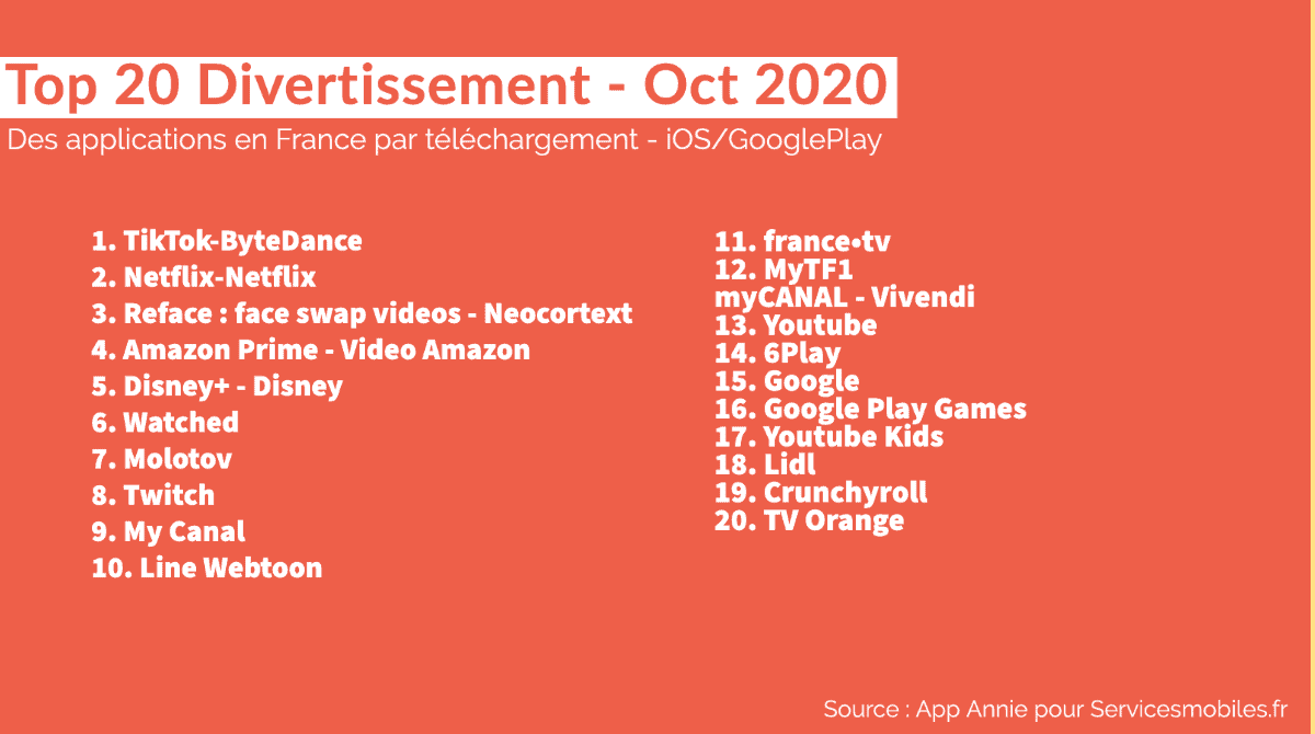 Le Top 20 des Apps en France (octobre 2020) : Finance, Media, Divertissement, Shopping, Santé