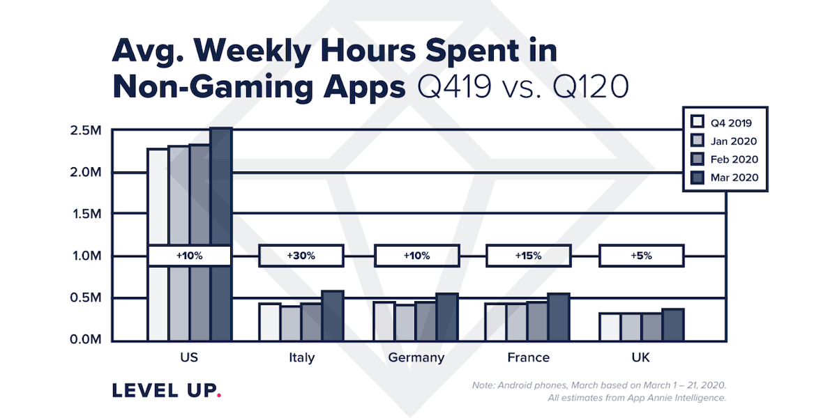 Le temps passé dans les applications en France a augmenté de 15% en mars par rapport au quatrième trimestre 2019