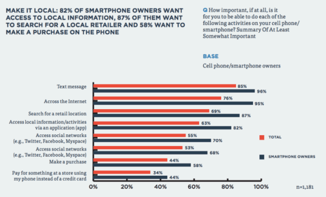 Placecast a mené un sondage (2000 personnes) en ligne aux États-Unis très complet sur les intentions d’achat avec son Smartphone. 3 utilisateurs sur 4 vont utiliser leurs téléphones pour trouver des achats, comparer les prix, prendre des photos de cadeaux possibles, et faire des achats.