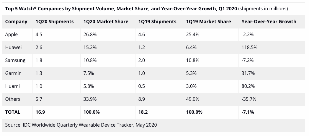 Malgré la baisse, quelques fournisseurs, comme Huawei, Garmin et Huami, ont réussi une croissance saine grâce à une moindre dépendance à l’égard des marchés chinois et à une expansion accrue aux États-Unis, en Europe et dans d’autres parties de l’Asie.
