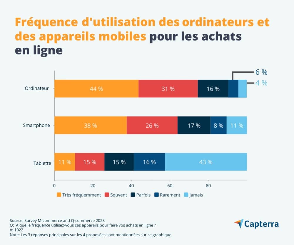 Des petits commerces aux grandes enseignes, disposer d’un canal de vente en ligne est désormais devenu une valeur ajoutée et essentielle pour la visibilité de leurs offres. En France, et selon les chiffres communiqués par la FEVAD, ce sont près de 146,9 milliards d’euros qui ont été dépensés par les Français pour l’achat de produits et de services en ligne en 2022, confirmant une croissance du e-commerce de près de 13,8 % par rapport à l’année précédente. Si les ordinateurs ont été les premiers appareils utilisés pour l’e-commerce, l’utilisation des appareils mobiles a participé à une diversification des options d’achats offertes aux consommateurs. Pour près de 53 % des consommateurs interrogés, ces dispositifs sont ceux auxquels ils recourent très fréquemment pour leur shopping sur le web, quand 44 % désignent l’ordinateur comme leur outil de prédilection dans le même scénario.