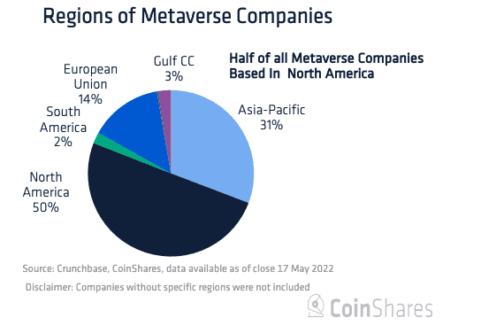 Les régions qui déploient le plus les start-ups qui créent et fournissent des expériences au sein du métaverse, sont les plus susceptibles d’écrire les règles du métaverse. Les entreprises nord-américaines ont plus occasions fréquentes de lever des capitaux. Le nombre de tours de financement est 50% plus élevé que