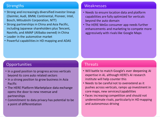 HERE est à nouveau en pole position, creusant l’écart avec Google. Les investisseurs et les partenariats stratégiques sont une force clé et les derniers ajouts à la composition des actionnaires comme Mitsubishi Corporation (MC), Nippon Telegraph et NTT ouvrent des perspectives dans de nouveaux secteurs verticaux et des opportunités de croissance en Asie-Pacifique.