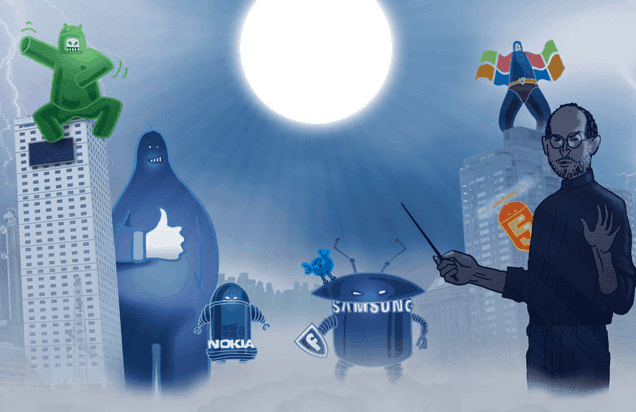 Le pouvoir des principaux acteurs au sein de la planète mobile continue à se consolider d’une manière durable. (l’image ci-dessus créé en 2013 montre que les Titans meurent et évoluent rapidement)