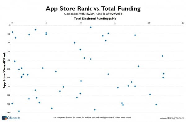 L’application évidente de ces données pour les investisseurs est d’identifier les éditeurs d’applications qui ont eu des capitaux efficace, c’est à dire ceux qui ont levé une petite somme d’argent, mais qui sont bien classés. (Oui – 25 millions de dollars c’est beaucoup d’argent)