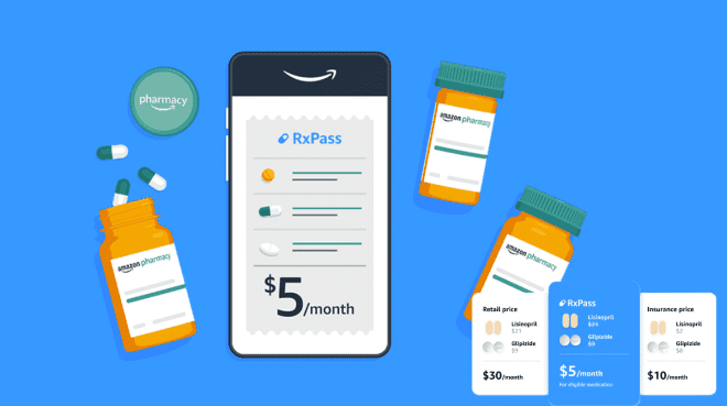 - Amazon propose des médicaments courants pour un tarif forfaitaire de 5 $ par mois via RxPass, notre nouvel avantage Prime.