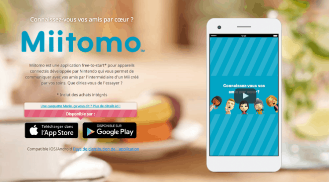 Depuis le lancement de Miitomo au Japon, l’application a dépassé tous les scores sur iOS et Android et a amassé plus d’un million d’utilisateurs. Suite au lancement le 31 mars dernier de l’application Miitomo (Nintendo) en France, cette dernière a atteint la première position dans le classement des apps les plus téléchargées pour l’iPhone et sur Google Play, selon les données App Annie Ces résultats suivent un premier lancement réussi au Japon le 17 mars dernier : Miitomo a atteint, au cours du premier mois, la première place dans les classements des téléchargements sur l’iPhone et sur Google Play.