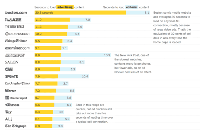 De nombreux sites ont chargés plus rapidement et étaient plus facile à utiliser sans publicité. Les données sont également coûteuses. Ils ont estimé avec un abonnement US de data moyen, le coût de chaque mégaoctet téléchargé. Par exemple visiter la page d’accueil du Boston.com tous les jours pendant un mois coûteraient l’équivalent d’environ 9,50 $ dans l’utilisation des données seulement pour les annonces.