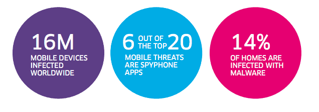 Les taux d’infection entre les appareils Android et Windows ont représenté 50/50 en 2014. Alors que moins de 1% des infections proviennent de smartphones iPhone et BlackBerry, mais de nouvelles vulnérabilités ont émergé l’an dernier pour montrer qu’ils ne sont pas à l’abri de menaces des logiciels malveillants. Bien souvent, ce sont des spyware mobile qui sont à la hausse. Le nombre d’échantillons de logiciels malveillants Android dans la base de données de Alcatel-Lucent a augmenté 161% en 2014.