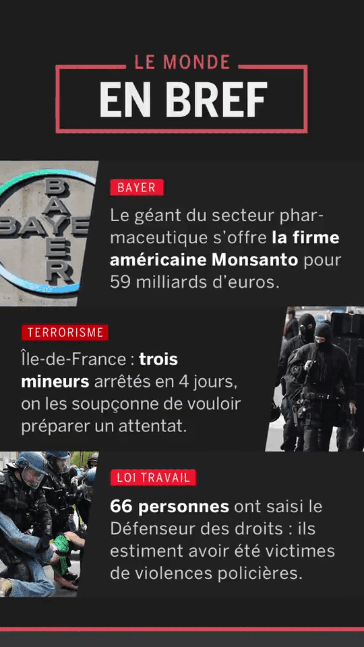 L’objectif du journal reste le même que sur l’ensemble de leurs publications : informer et donner les clés nécessaires à la compréhension de l’actualité française et internationale. Tous les jours, à 17 h 30, les utilisateurs de Snapchat trouveront sur la chaîne Discover du Monde une nouvelle édition constituée d’une douzaine de cartes dans des formats visuels et verticaux, adaptés aux écrans mobiles, qui feront la part belle aux infographies, aux photos et aux vidéos. En dessous de certaines cartes, des articles ou des vidéos seront disponibles pour explorer plus en profondeur les sujets importants de la journée.