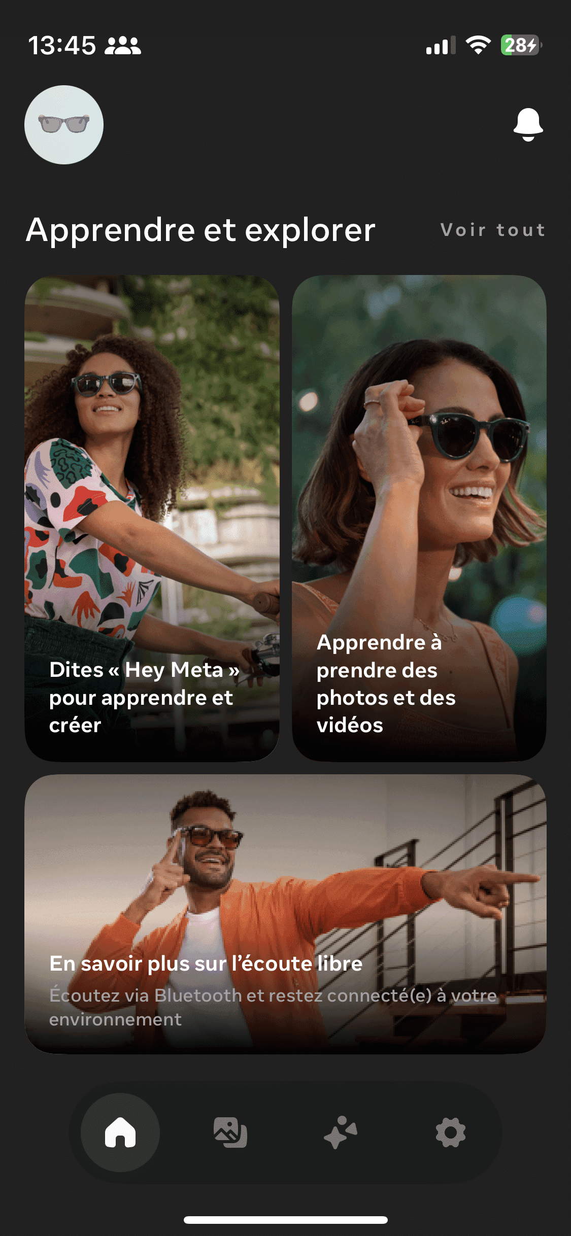 L’innovation continue avec Meta View, une app qui facilite encore plus l’intégration du partage de moments dans votre vie numérique quotidienne. Grâce à cette application, partager vos captures sur vos applications préférées devient un jeu d’enfant, en un simple clic. Ce processus rend le partage à la fois plus intuitif et instantané. L’application offre une gamme complète de paramètres (Voix, Caméra, Appels et messages, Musique – actuellement limitée à Spotify, notifications, Galerie, WiFi, Gestion des gestes…), vous permettant de sauvegarder automatiquement vos photos et vidéos sur votre smartphone via WiFi, même en déplacement, grâce à sa capacité à détecter les réseaux WiFi disponibles. Il est également possible d’autoriser Meta à stocker votre contenu sur leur cloud, il y a une piste d’amélioration pour la sauvegarde en la permettant sur différents services cloud.