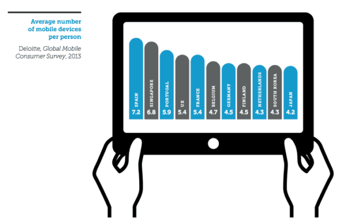 Jamais l’utilisation du mobile n’a atteint de tels niveaux : Google estime que 50% des recherches sur son moteur proviennent de terminaux mobiles. Une personne possède en moyenne entre quatre et sept appareils mobiles.