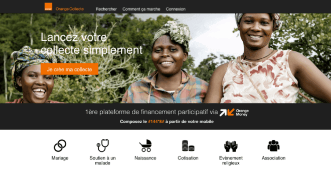 Orange Collecte, la première plateforme mobile de financement participatif en Afrique utilise Orange Money. Une plateforme lancée avec HelloAsso, leader français du crowdfunding associatif.