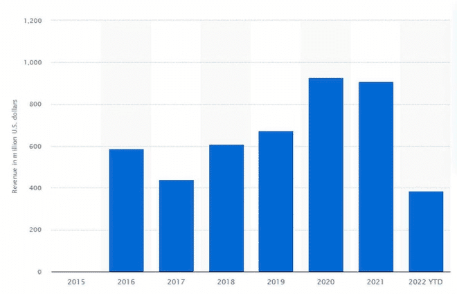 Un aperçu des revenus annuels de Niantic générés de 2015 à 2022 (Image via Statista)