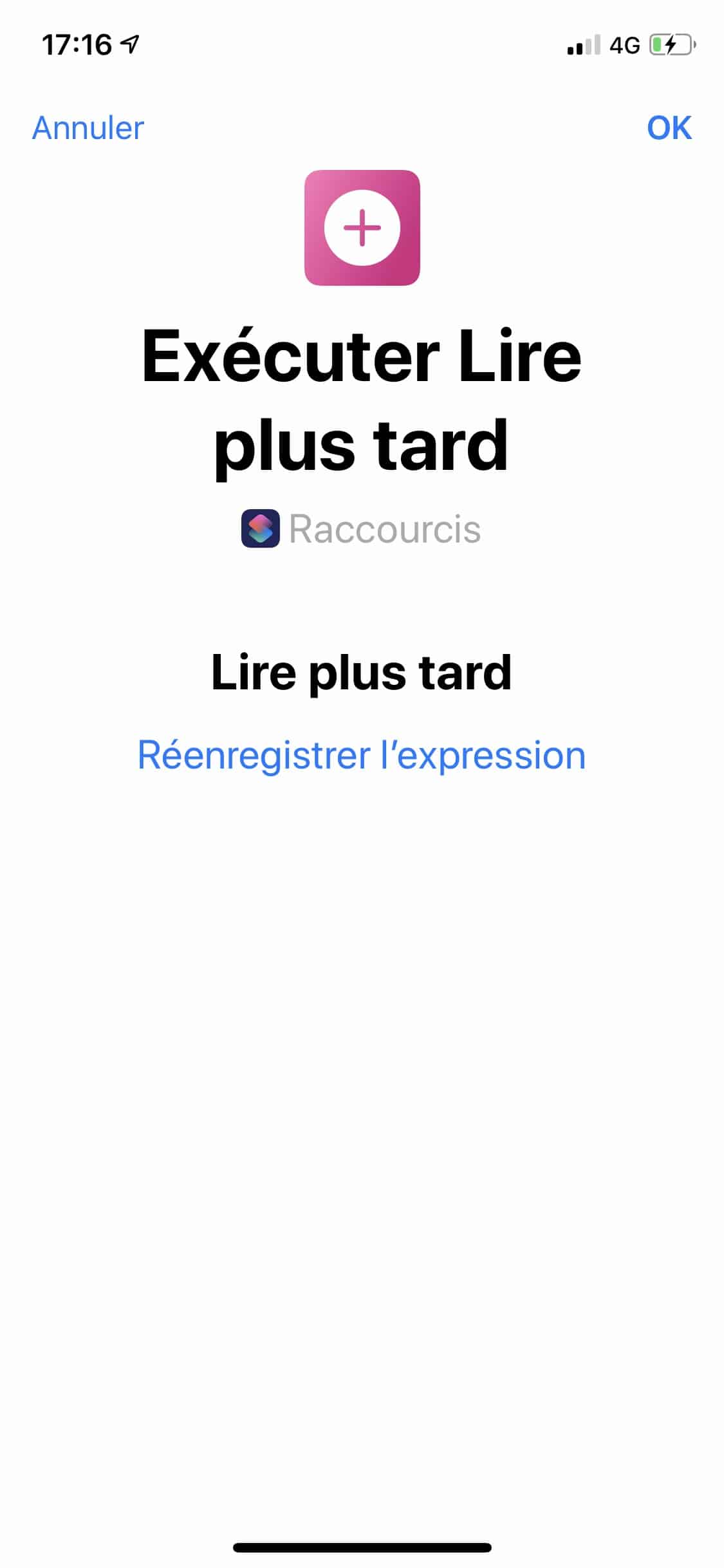 De nombreux raccourcis sont déjà fait dans un mini-store qui vous permettra de créer un raccourcis. Ci-dessous la fonction, lire pour plus tard une page web que vous n’avez pas le temps de lire, Siri va la sauvegarder pour plus tard. Vous pouvez paramètrer cette fonction entièrement dans l’app raccourcis, pour allez directement dans la liste de lecture par exemple !!