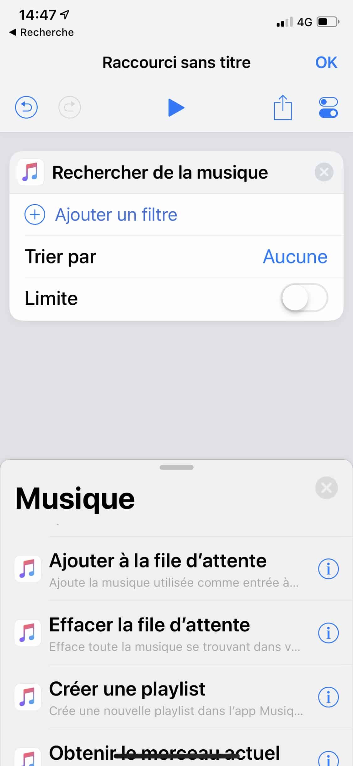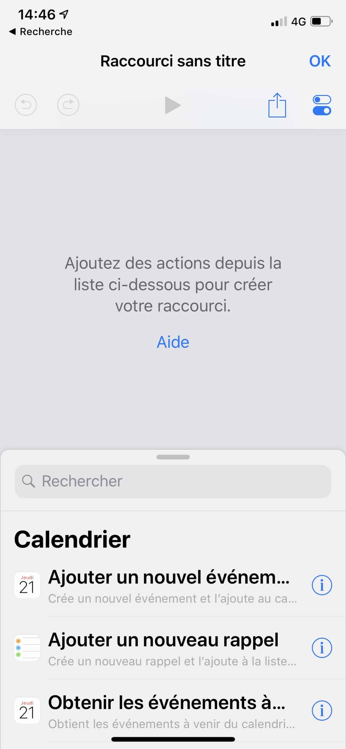 - Dans l’app Raccourcis