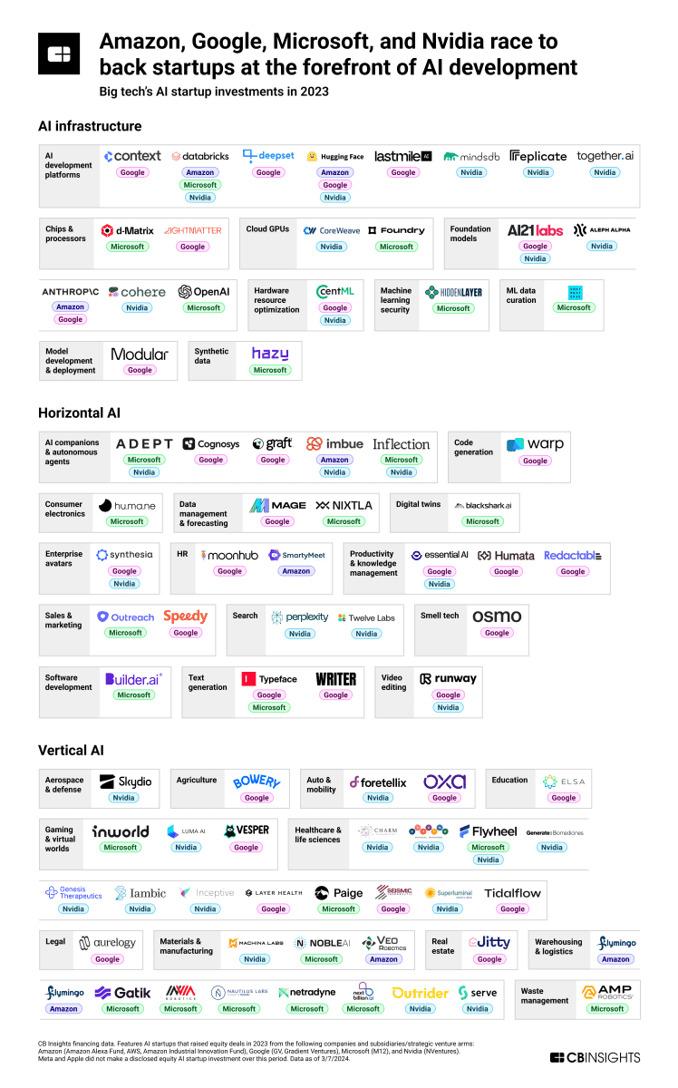 Plus de 75 startups IA soutenues par Amazon, Google, Microsoft et Nvidia