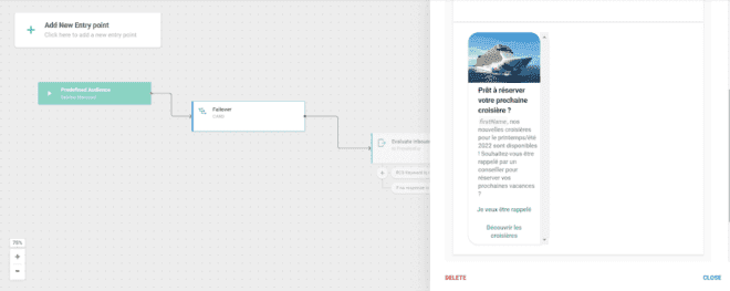 Il vous faudra penser un scénario pour votre segment de client. Les options d’opt-out sont obligatoires pour faire valider votre agent auprès des opérateurs (et bien sûr maintenir votre liste de contacts saine et respecter les souhaits de vos utilisateurs). Contrairement aux SMS, les options d’opt-out doivent être implémentées par vous, dans votre scénario.