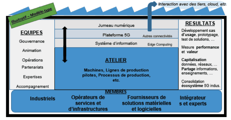 Exemple de structuration d’un campus fablab 5G industrielle selon la mission 5G industrielle