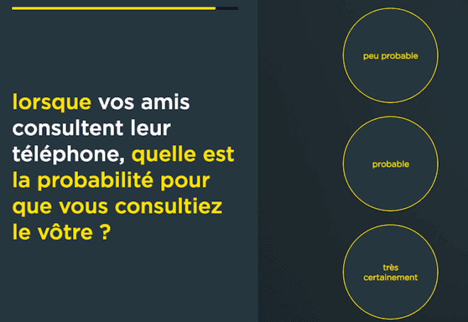Il nous accompagne partout dans notre quotidien et nous avons parfois tendance à en abuser. Nous regardons notre smartphone en moyenne 26.6 fois par jour, et jusqu’à 50 fois pour les 18-24 ans. Nous savons également que 81% d’entre nous regardent leur smartphone pendant des dîners de famille ou avec des amis.