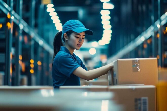 Image d'illustration. Employés en plein travail dans un centre logistique moderneADN